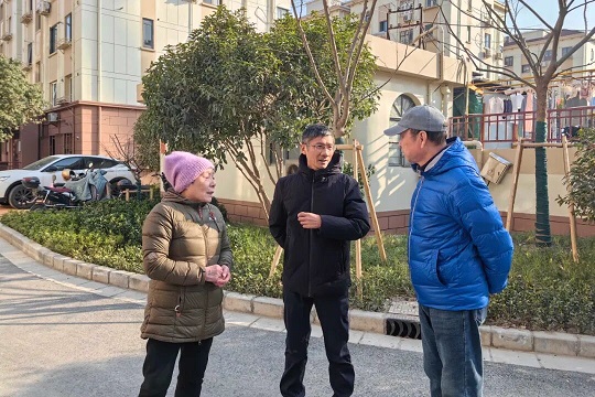 細(xì)節(jié)是初心的注腳。“阿姨,儂放心,我們修外墻時(shí)會(huì)用小錘一寸寸敲,有空鼓就鑿掉,防水、墻固、膩?zhàn)樱坏蓝疾荒苌?rdquo;,這是他用手比畫(huà)著向居民解釋外墻修繕工藝。“爺叔,我看過(guò)了,天井圍墻的立柱確實(shí)太密了,我來(lái)聯(lián)系調(diào)整”,這是他上門(mén)查看居民反映問(wèn)題給到居民的現(xiàn)場(chǎng)答復(fù)。有次,一位行動(dòng)不便的獨(dú)居老人猶豫著向他開(kāi)了口,能否趁腳手架還在,幫她從外面擦擦那扇平時(shí)怎么都?jí)虿坏降拇皯簦克彩且豢诖饝?yīng),“沒(méi)問(wèn)題,我來(lái)安排”悄然暖了人心。天井圍墻沖孔鋁板反復(fù)打樣七次,只為不影響天井居民家的通風(fēng)采光;入戶平臺(tái)設(shè)計(jì)圖紙半個(gè)月內(nèi)改稿八次,只為保證居民推門(mén)出行的安全。在他看來(lái),想要做好民生工程,讓宏偉的設(shè)計(jì)藍(lán)圖安穩(wěn)落地,關(guān)鍵就是這些細(xì)之又細(xì)的針腳。
