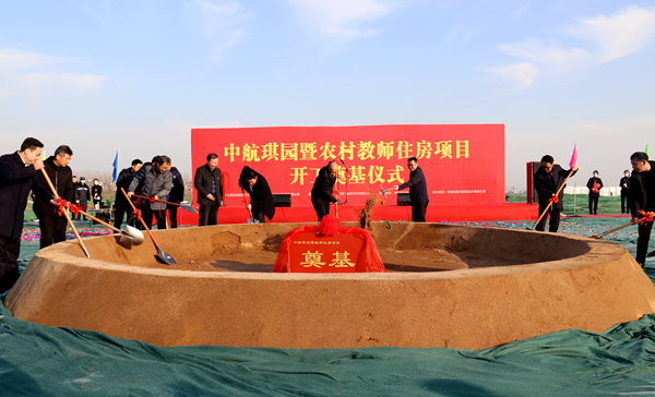 隨后,正陽縣委常委、統戰部長王振偉宣布中航琪園暨農村教師住房項目開工奠基。在歡快的樂曲聲中,出席儀式的領導嘉賓共同為中航琪園項目的開工建設奠基培土。